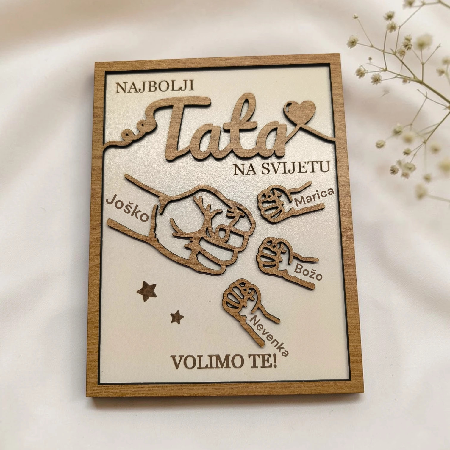 Personalizirani poklon s imenima djece koji pokazuje koliko je tata važan dio obitelji.